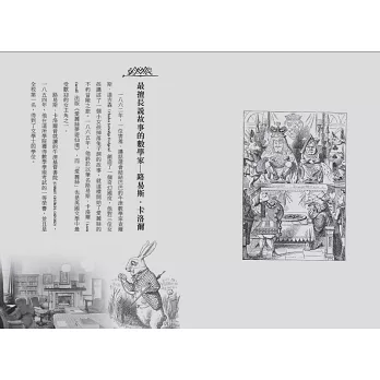 受英國維多利亞女王肯定的插畫家約翰.譚尼爾,因為他為《愛麗絲夢遊仙境》畫的插畫,讓故事插畫成為了有史以來最著名的文學插圖。本書收錄42幅1865年初版插圖,讓讀者體會最初的閱讀感動。