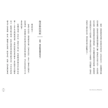 與英文原書做法相仿,採用紅棕色封面裱紙做出復刻精裝小開本,精緻好攜帶,一起和愛麗絲展開奇幻冒險之旅吧。