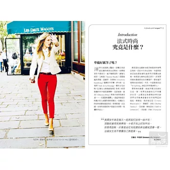 本書引妳走進巴黎街頭、發掘個性好店、分享風格人士私房衣櫃、認識最in的新銳設計師品牌,徹底了解簡潔洗鍊、摩登優雅的法式時尚;更教你打破偏見與迷思,避免常見穿搭陷阱,成功混搭改造出獨一無二的個人風格。