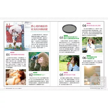 同時,本書在編排上擺脫了一般攝影技巧書較為刻板且嚴肅的解說方式,本書將以大量的照片,配合生動且易懂的文字說明,讓更多剛入門,或是對拍攝女友、或是女王有障礙的攝影愛好者們,有可以參考的範本,同時,也藉由這樣的拍攝經驗傳遞,讓你心愛的她對你心動100%!
