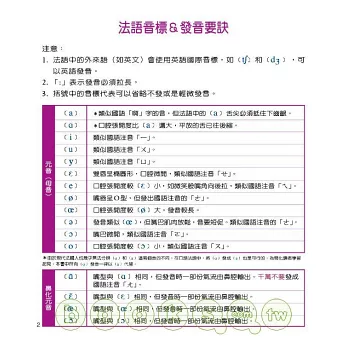 您可以搭配本書所附之MP3跟著開口覆誦練習,先習慣法文的語感,如此到法國時很快便能排除陌生感融入其中。在法國與當地人溝通時,希望您能多多利用本書,自由自在地悠遊法國說法語,留下更多與當地人互動的美麗回憶。
