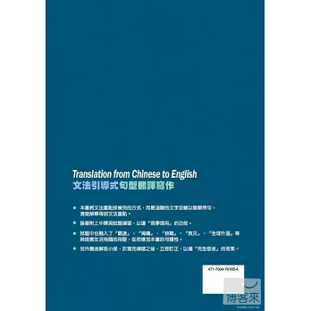 將文法重點採條列的方式,用最淺顯的文字並輔以簡單例句,清楚解釋每則文法重點,並立刻附上中譯英試題練習,以達『現學現用』的功效。