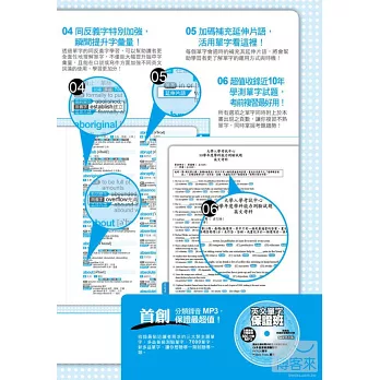 2.特別整理每個單字的「動詞三態變化」、「名詞複數」、「形容詞的比較級與最高級」,讓學習者在考試時,能輕鬆應付「時態、單複數、比較級與最高級」的考題變化。