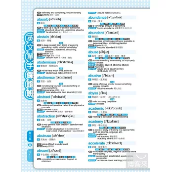 1.全部單字皆附有音標、中文解釋、英英解釋,如同擁有一本「朗文當代高級辭典」、「牛津英英辭典」或「文馨高級英英英漢雙解辭典」……,以英
