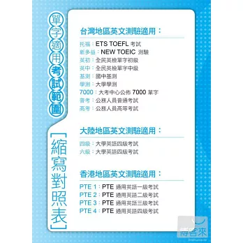 適用最廣──完全適用學測、基測、推甄、TOEFL、TOEIC、高普考、英檢初中級、大陸四六級、香港PTE測驗