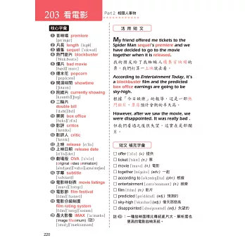 ◎ 每一主題包含:20個核心字彙 + 1篇活用短文 + 10個補充字彙