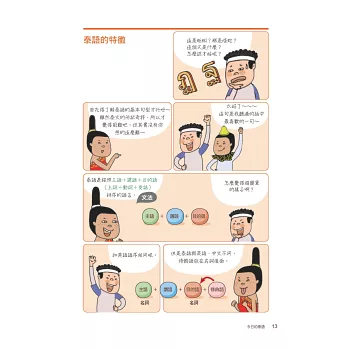擷取學習要點,不時以簡明扼要的表格、插圖協助理解泰語的文法。文法再怎麼相似,都能一目了然。