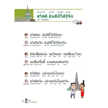 模擬真實的泰語會話,只要跟著聽、跟著講,就像跟泰國人談話一樣,學會出正確的泰語對話。