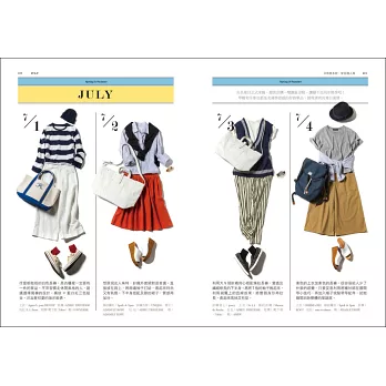 一天都不少!唯一真正365套穿搭全部收錄。按照季節日期排序,點出各季搭配重點、適合配色,再隨各月氣候調整衣著,配合當季單品,穿出不過時的季節感、掌握365天都不同的時尚Look。不管是參考還是照著穿,都能輕鬆搭出專屬於自己的個人風格。
