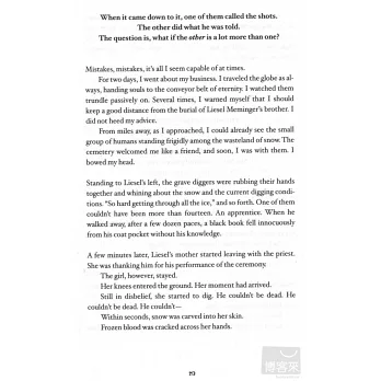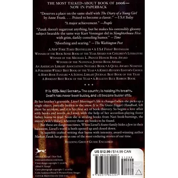 ★這本書太特別了,一開頭就深深吸引了我。……書中最引人入勝的就是結構。死神這個敘事者不斷穿梭時空,在故事現場和當代的讀者面前敘述故事的發展、人物的結局……——教育學家Susie Wilde發表於Children Literature刊物上的評論