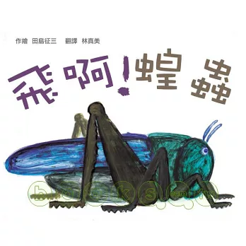 《飛啊!蝗蟲》是田島征三於1988年創作的繪本,是在他「搗毀」舊有的創作風格後的作品。田島征三運用大筆揮毫的方式來繪圖,這樣一筆畫到底的手法讓整體看來仿若渾然天成,沒有處處精雕細琢,也沒有層層堆疊鮮豔的色彩,他自由的筆觸,顯現魄力十足,讓簡單的故事呈現出不凡的氣勢,震撼讀者的視覺感官。這或許要歸功於他先前不斷破壞、不斷創造的創作歷程吧!