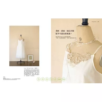 熱愛DIY的朋友到了夏季當然要為自己和家人準備一些能靈活穿搭的服飾單品,本月要介紹給讀者的是,以5分袖的連身洋裝作基礎搭配三種不同類素材的布料,麻紗、雙層紗布和針織布,變換出多款不同質感,可以給大人、小女孩和寶寶的夏季實搭休閒洋裝。接著同時收錄夏季必備的內搭褲、綁繩細肩帶上衣、包包和布偶…等多款雜貨小物的製作,全都是現在馬上能派上用場的作品,準備一冊在手,就能為您打點好今季的自然風流行扮相。