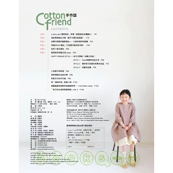 「Cotton friend手作誌」是一本專門介紹各類手作的專業雜誌,從繽紛的美麗拼布、縫紉作品的教學、基礎刺繡、布偶縫製與設計、小物與家飾品的製作等,皆搭配精采的圖文詳細解說。而每集必附的原寸紙型可供縫製時描繪之用,不但能夠可縮短作品的製作期,還能自行選擇所需的規格及尺寸。本誌不僅是手作新手必備書,熟手們也是愛不釋手,想進入手作界,這一定是您不可或缺參考用書。