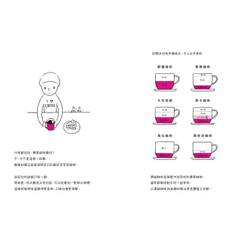 我是在這本書折購期間購入的,這是一本插畫書,插畫圖樣不會很複雜,一眼就懂,帶著療癒的感受,在品嘗咖啡時閱讀會更加有感受,裡面也對咖啡的基本知識與沖泡咖啡的方式有些介紹,也適合入門閱讀,可以很容易掌握,我很喜歡這本書。