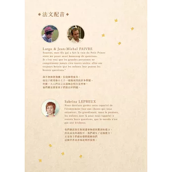 中.英.法三種版本皆按照故事情節穿插經典小王子彩圖,不論閱讀哪種版本,都能深切體會經典作品的雋永魅力。