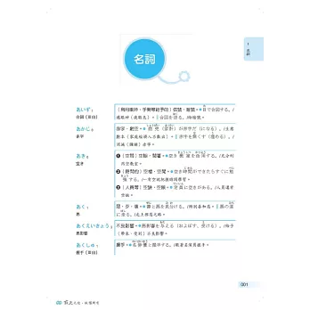 讀音與漢字分上下行排版:國人因習慣漢字,所以常看到漢字就自然忽略讀音。本書特意將讀音與漢字分行排版,讀者可將下方漢字遮住,測試自己是否確實掌握該讀音及意思。