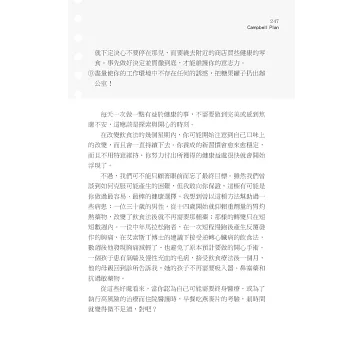 湯馬斯.坎貝爾博士以專業及創新的方式,將有根據的建議和實用的資訊融合在《救命飲食人體重建手冊》之中。我建議你趕快閱讀此書並將書中方法付諸實行,幫助你每餐都從水果、蔬菜、穀物和豆類中獲得難以想像的益處。你的身體(和醫生)將會為你喝采。──艾米.喬伊.拉諾博士,北卡羅萊納大學阿什維爾分校保健系副教授兼系主任