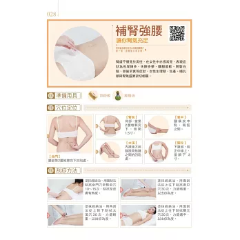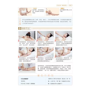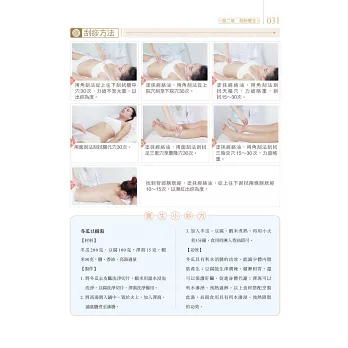 書中穿插「養生小妙方」漢「小叮嚀」等,提供讀者改善病症的食療方,還有生活、心理層面該注意的小地方,讓保健養生更加面面俱到。