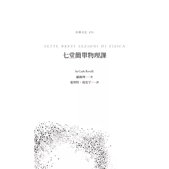 羅維理找到解說科學的新方法,簡單又熱情。他的七堂簡單物理課如此的優美、簡潔,如夢似幻,這種呈現,只有詩才偶而辦得到。──保羅.裘唐諾(Paolo Giordano),《質數的孤獨》(The Solitude of Prime Numbers)作者