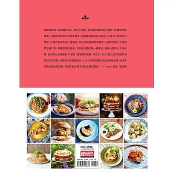 「對我來說,療癒食物不是家常菜,而是我們下功夫用愛烹調、能讓我們快樂的食物。它是我們記憶中的美味童年,沮喪時它為我們加油打氣,在深夜撫慰我們寂寞的胃。有時光是下廚的過程就令人滿足,看著心愛的人大口吃菜,我們的心也被療癒了。當然還有那些令人瘋狂的蛋糕、巧克力、冰淇淋……人人心中都有屬於自己的療癒食譜,而這本食譜是我送給你的禮物,希望你能在書中找到幸福的歸屬。」──Love,傑米.奧利佛