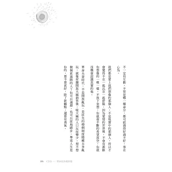 不要害怕回歸本能,不要害怕你的想像超越你的經驗,也不要擔心離你熟悉的傳統太遠。如果愛得燦爛,一夜就是永恆;如果恨之入骨,片刻形同隔世。心之所以會空洞,不是因為失去一個人,而是在你愛上他時,就為了想裝進全部的他而將自己掏空,所以才會在他離開後,顯得荒蕪。