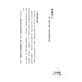 ◎本書是市面上極少數「單從男性角度」而寫的兩性書籍,題材及觀點均極特別。