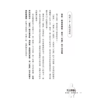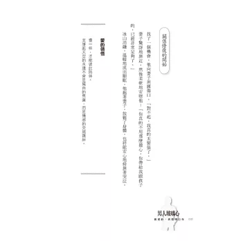 讀了這本書,面對身旁那依舊少說出內心話的男人,我們可以比較安心,使彼此的靜默不再是無聲或懷疑,而是多了一些理解在其中流動。