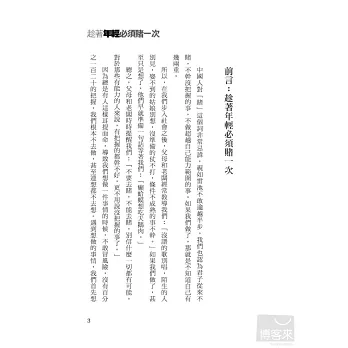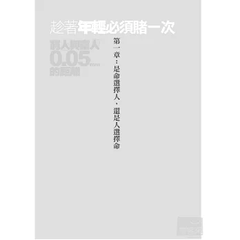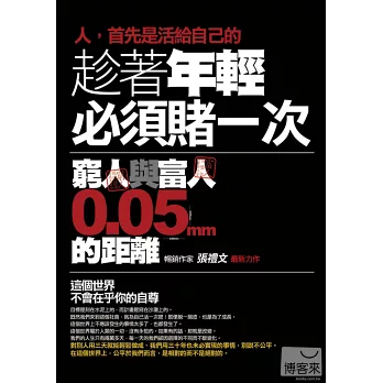 ■暢銷書作家張禮文,繼《窮人與富人的距離0.05mm》、《30歲代表了什麼》、《20幾歲,決定男人的一生》、《20幾歲,你要改變什麼》、《35歲,活著是一件非常複雜的事》,系列作品突破400,000冊,2014年又推出強力鉅作!