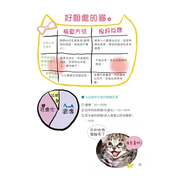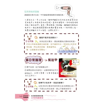 文字簡單易讀,以精準扼要的文字+一目了然的圖示法,讓養貓初心者也能輕鬆上手。