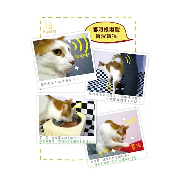 不必怕貓咪小調皮,不良習慣都有方法可管教。針對亂抓物品、隨地便溺、咬人、哭叫、變得兇狠、半夜不睡覺等行為。書中列舉原因,並教貓管家們針對不同「心理因素」和行為根源,提供矯治方法。連貓咪健康減肥法一併附送(用小心機,讓愛貓自然瘦)。