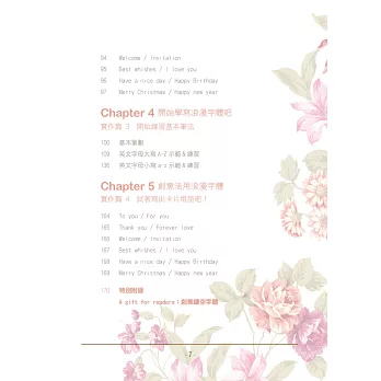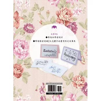 誰不會寫英文字母ABC?但是要把它寫得漂亮可是一門學問!本書介紹兩大西式書法字體:哥德體及浪漫體,一步步帶領大家將簡單的ABC字母變身為華麗又令人驚艷的花體字,實際重現歐洲皇室貴族的古典美學!