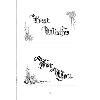 將常見的卡片用語以法式浪漫體和華麗的哥德體來書寫,
