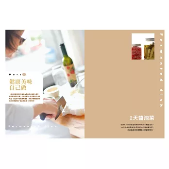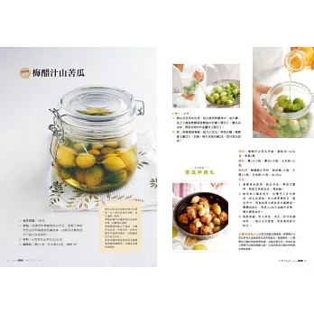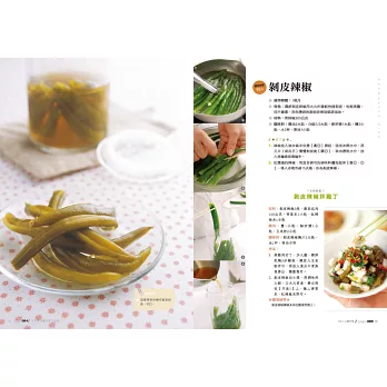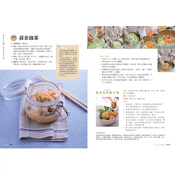 書中各式風味的醬泡菜,每種作法都超乎想像的容易,材料、調味料也都很方便取得,醃漬時間也不需要很久。像是印象中需長時間醃漬製作的脆瓜、花生麵筋、德式酸白菜……等,甚至當天或2天就能食用。