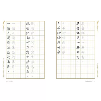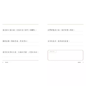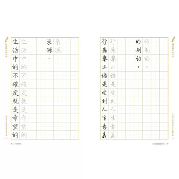 無論你選擇的是侯信永老師勁直勇健的楷書,或是葉曄老師清麗秀美的行書,這本書都能為愛寫字的人重溫寫字的初衷,為即將愛上寫字的人找到寫字的快樂。