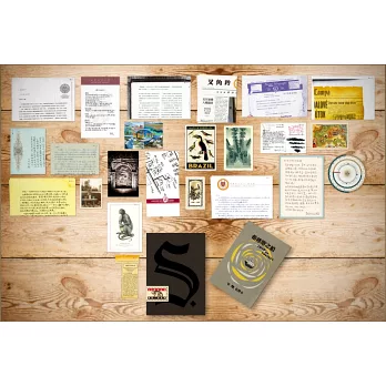你捧讀這本理應是全新的小說,卻發現書頁早已被兩個讀者塗寫過,紙張彷彿透著圖書館的陳舊氣息。書中還附有明信片、餐巾紙、羅盤等23個材質各異的物件,都是她和他留下的第一手證據。你隨著筆跡深入故事核心,得知書中竟暗藏求救的密語,而他們奮不顧身地追尋,只為查出消失作家的身分。但謎團未解,你卻發現了不屬於她和他的神秘筆跡,寫著「S」……