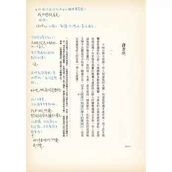 這是我生平第一次透過真實字跡來閱讀小說,讀到入戲時,彷彿能觸摸到筆尖用力刻在紙上的凹痕;隨著墨水顏色變化,親眼目睹兩個愛書人如何透過寫字,攜手揭開一個動人的文學之謎,進而漸漸向彼此靠近……我相信,讀完這本小說,你會再次相信文字的力量。