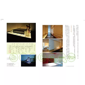 大正時期至今近百年的世界遺產銀山藤屋,隈研吾只用一式設計手法變將全貌呈現了:大小不一各式竹與檜木格柵塑造出的「朦朧」,再以間接洗牆燈光灑出上下一片「漸層」的金黃。老藤屋依舊軀殼不毀,新藤屋在「漸層的朦朧」植入後便進駐了新的靈魂;,面對窗外的殘雪或秋楓,這理性與感性兼具的池子該是全銀山溫泉最舒適浪漫的湯享受……而那須二期俱樂部,溫室裡有機栽培的蔬菜不使用農藥,Villa前方一片偌大自家稻田,溪中岩魚夏秋正是肥美之季;這山裡大地自然的恩惠是年輕總料理長宮崎康典欲求表現的素材,這多管閒事的旅店,管吃管喝管玩管樂還管穿,客房裡每人有四套服裝——浴袍、運動服、禦寒外套和絲質睡衣,另配有兩雙鞋——拖鞋和野遊雪靴!貼心處處,無怪乎大多來過此地的旅人會想「二期再會」!仙風道骨的美山莊,大多都市文明人對於客房內沒設浴室皆露出不以為然之貌,但當進入這公共澡堂時才更驚訝,這根本是超豪華的家庭湯屋;這風呂足足可容納一家四人,長而水平落地窗外則是和緩的溪流與原生樹林,陽光下婆娑粼粼波光,讓這澡堂的情境氛圍直勝一般溫泉旅館!