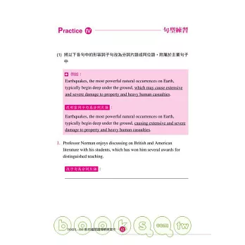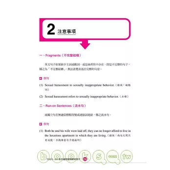列舉出許多容易犯錯的地方,釐清觀念並且提供練習題,清除閱讀和寫作的障礙。