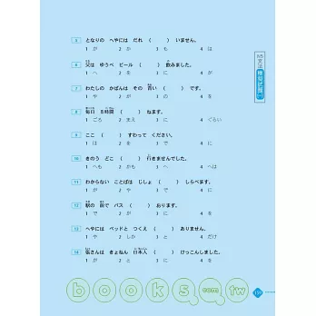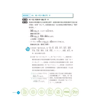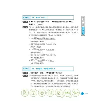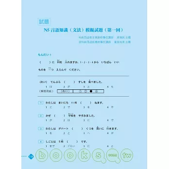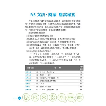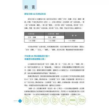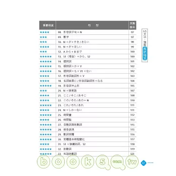 ◎ 言語知識(文法).讀解:整理出常用重要文法句型,每個句型附有詳盡文法解說,再加上句型比較、例句幫助讀者融會貫通。同時以「★」號標示文法重要程度,考前立刻掌握必考重點,事倍功半高分過關!