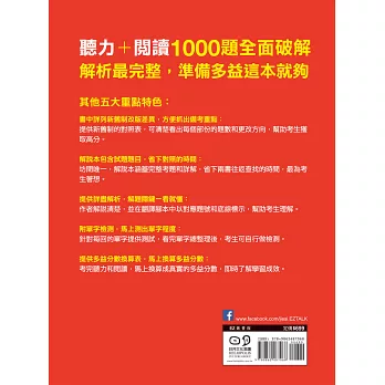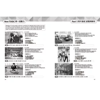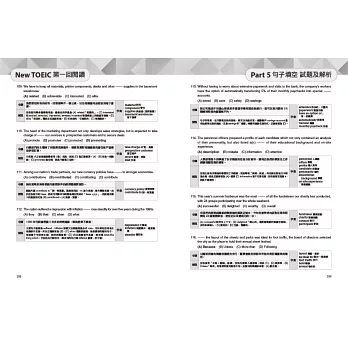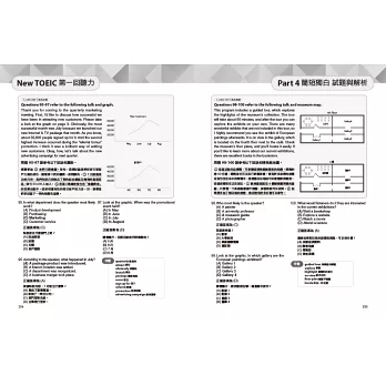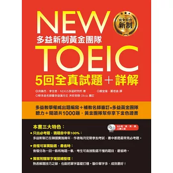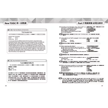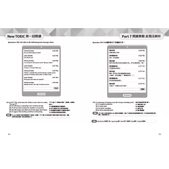 ◆ 本書的Part 7也配合新制題型,增添了簡訊、即時聊天等閱讀文章。另外許多考生擔心的三篇閱讀,以及在文章中選擇一句話的插入點這些新制更改的題型,本書也全部收錄。