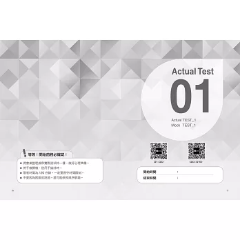 ◆ 而實戰用和考試用的差別在於考試用的音檔多了白噪音,完全模擬考試臨場聽覺效果,耳朵聽習慣,真正應考也不成問題。