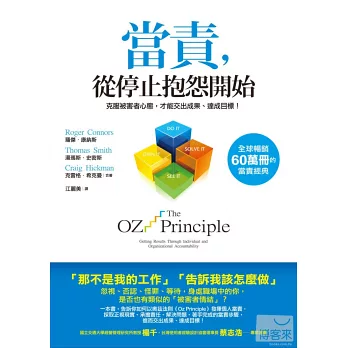 而這一切,並非魔法師奧茲施法,而是每個人發自內心、願意為自己的際遇做主;並且發揮智慧、熱情和勇氣,採取正視現實、承擔責任、解決問題、著手完成的當責步驟,最後終能交出成果、達成目標,而這就是奧茲法則(The Oz Principle)。