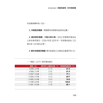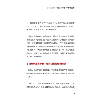 他長期持有民生必需產業的好股票,領股利的同時,再搭配增貸與借券,為自己打造更堅固的金飯碗,目前一年能領到超過百萬元的被動收入!以下是本書精彩內容: