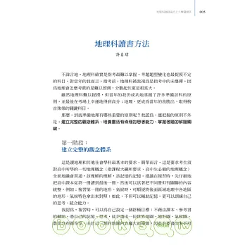 ◎地理科榜首K書思維:留意周遭天然與人為變化,結合課本所學理論,建立完整的觀念體系,培養靈活有條理的思考能力,自然就能戰勝考題!