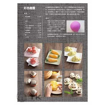 書中將發酵麵食分為十一個單元:原味麵團、全麥原味麵團/家常麵團、全麥家常麵團/老麵團/彩色麵團/牛奶麵團/雞蛋麵團/黑糖、白糖麵團,更包括鬆軟麵團/低筋、彩色鬆軟麵團/開花甜麵團…等。每一個單元都有最完整的介紹,除了詳實的配方外,更附上清楚的步驟圖,再搭配上120分鐘的DVD,每一位讀者都可以沒有困惑的在家製作書中所有的發酵麵食。