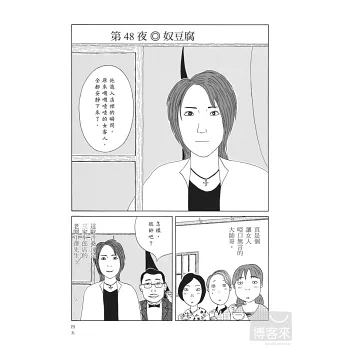 「一天又結束了,當人們趕路回家的時候,我的一天才正式開始。菜單只有牆上寫的這些,你也可以點你想吃的,我做得出來就幫你做,這就是我的經營方針。營業時間從午夜十二點到早上七點,人們稱這兒叫『深夜食堂』。你問會不會有客人來?喔,還不少喔!」
