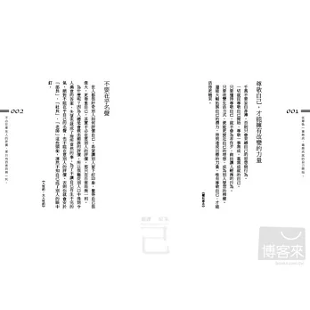 尊敬什麼也不會,還沒有做出半點成績的自己。只要懂得尊敬自己,就不會做出不好的事、被人輕蔑的行為。這麼一來,你的生活方式就會改變,變成你所期望的自己,變成值得他人學習的對象。