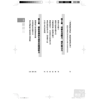 想要充分發揮與生俱來的閱讀能力,得從「飲食生活」與「基本讀解能力」兩個面向著手。這兩章要教大家在日常生活中怎麼做,好奠定開發潛在閱讀能力的基礎。