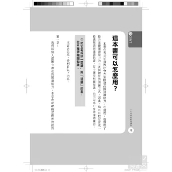 本章將基本閱讀能力細分成十個項目,逐一說明,提醒讀者們平常閱讀時應該留意哪些地方。