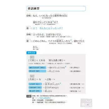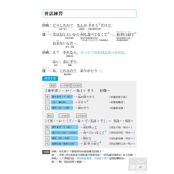 作者憑藉優秀的中文能力,能夠細微的掌握中日文的使用差異,所以知道如果依賴「中文句義」來使用日文句子,極可能產生誤用風險。因此特別採取「情境式的用法解說」,將這句話「什麼時候說?」「可以對誰說?」以及「從中文句義看不出來的用法線索」、「提醒建議」等,全部包含在「每日一句的用法」之中。透過情境的輔助,不僅更容易熟記這個句子,學會話的感覺也更具臨場感!